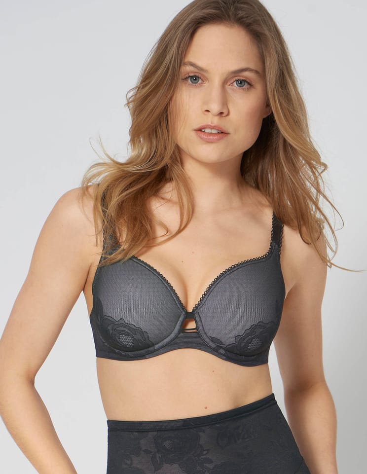 Biustonosz z serii bielizny Shape Wild Rose Sensation od Triumph dzięki lekkim miseczkom Spacer Cup i koronce o średnich właściwościach modelujących oczarowuje nieskazitelną sylwetką i tworzy naturalnie piękny dekolt.